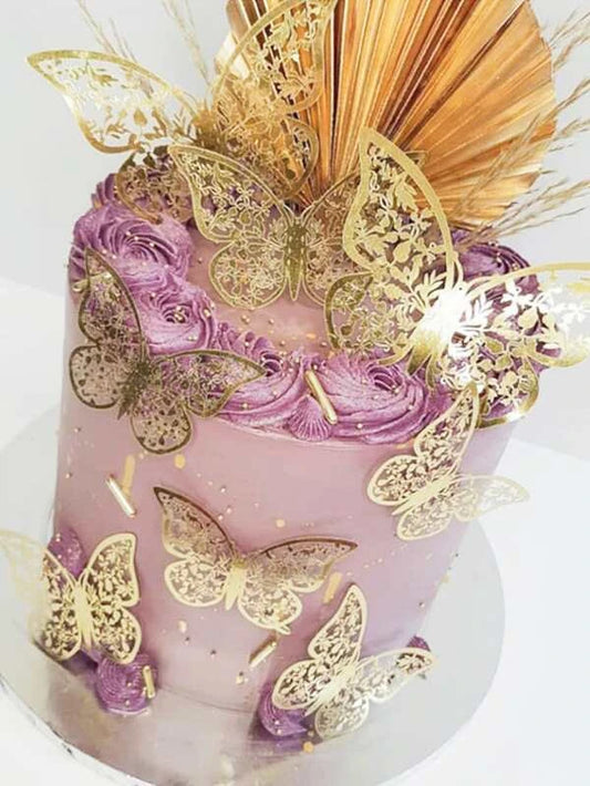 12 pcs Metallic Texture Butterfly Cake Toppers- Gold