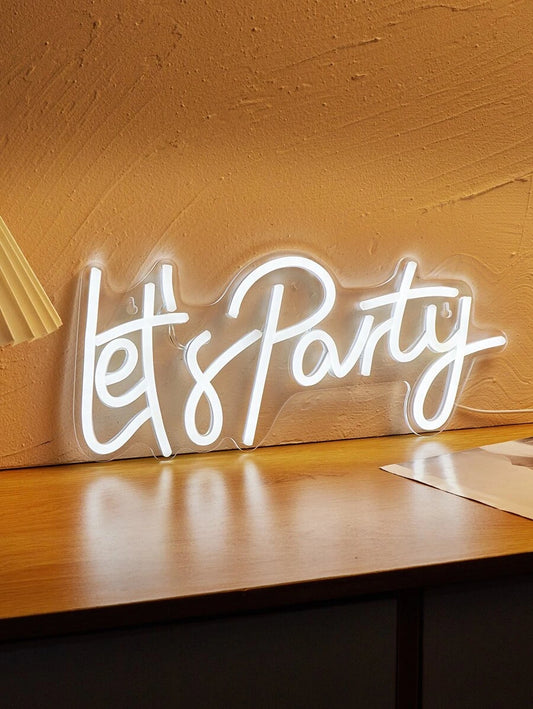 Decorative LED Neon Sign- Lets Party- White/ Pink